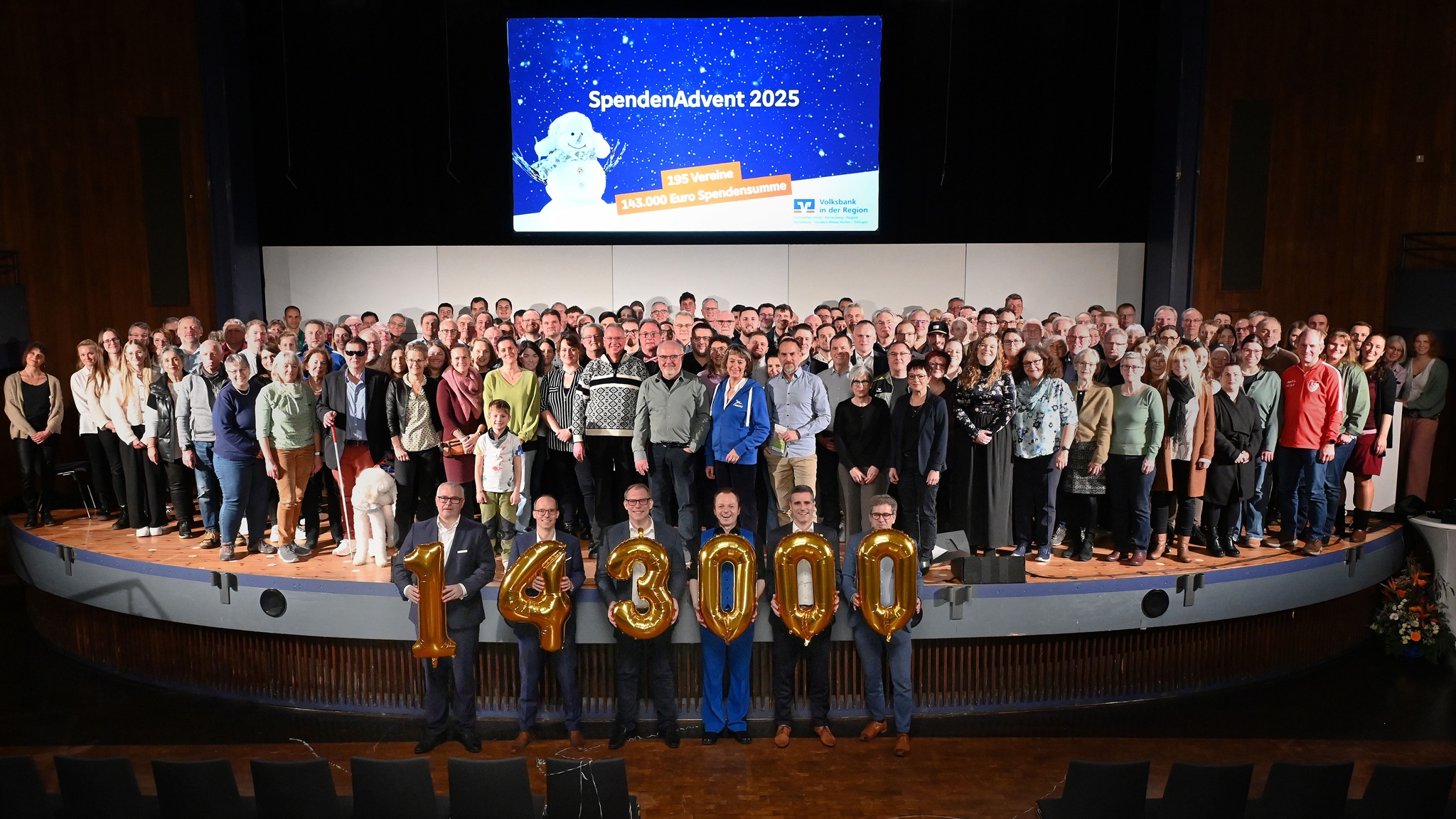 Die Volksbank in der Region (VBidR) hat am 8. Dezember 2025 in der Stadthalle in Herrenberg eine festliche Übergabeveranstaltung im Rahmen ihres SpendenAdvents 2025 abgehalten. Über 400 Gäste versammelten sich, um die feierliche Übergabe von 143.000 € Spenden an 195 Vereine, kirchliche Einrichtungen und Schulen in der Region zu feiern.